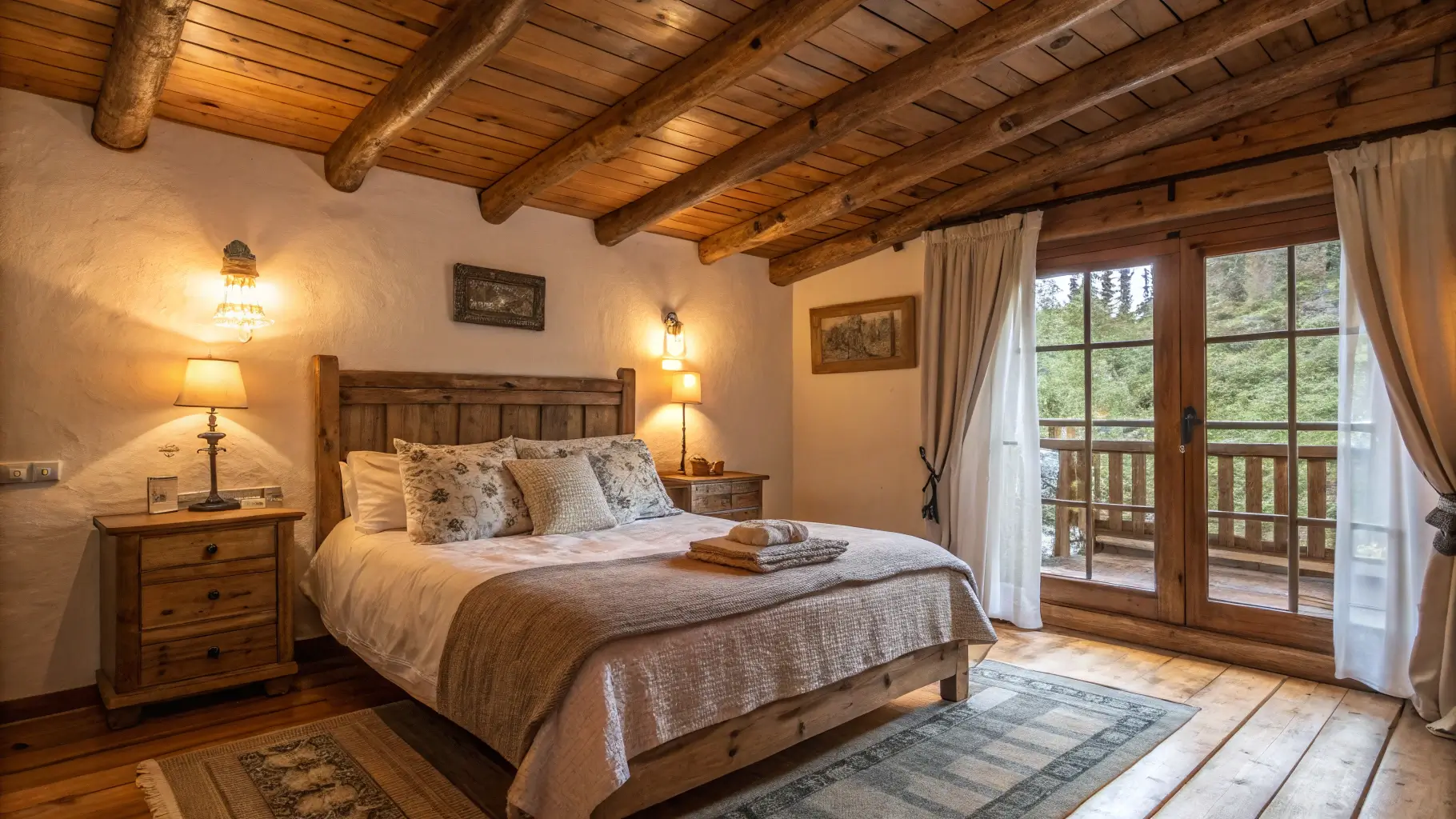 * Ambient Lighting: This is achieved with warm bulbs in table lamps, floor lamps, and rustic chandeliers made from materials like antlers or wrought iron[1][27].