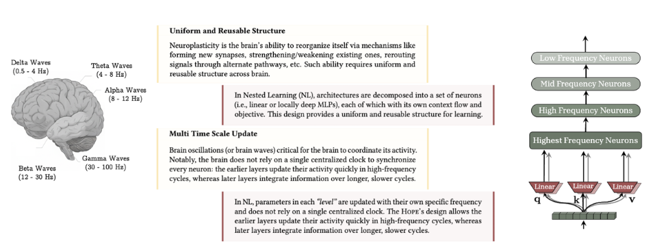 Google Research introduced Nested Learning, which casts training as nested optimization problems, aiming to unify model architecture and optimization to mitigate forgetting; a proof-of-concept self-modifying system named Hope demonstrated strong language modeling and reasoning performance with multi-timescale memory updates[7].