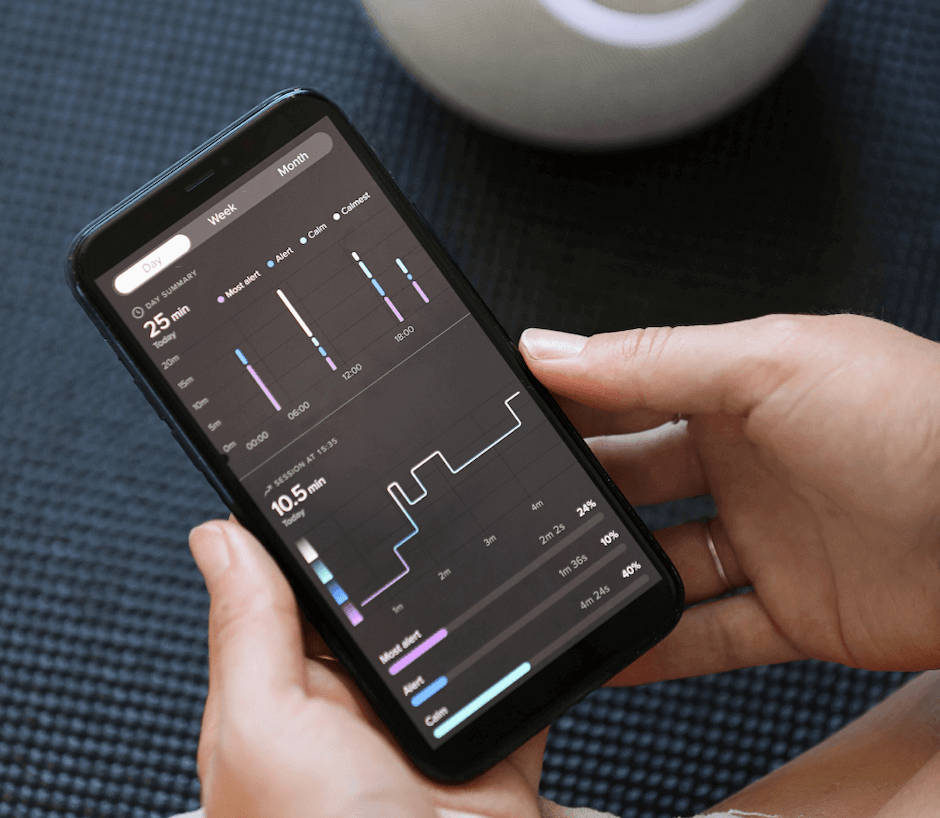 A discreet wearable that tracks physiological markers to support meditation and emotional balance[1].