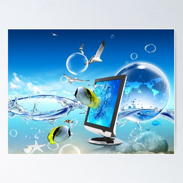 Glossy Frutiger Aero scenes focused on ocean-floor details: starfish, seashells, sandy bottoms, and playful underwater dioramas. From bursting-screen fantasies to futuristic sub-sea structures and toy aquariums, each piece spotlights seabed elements in the aesthetic’s bubbly, high-saturation style.